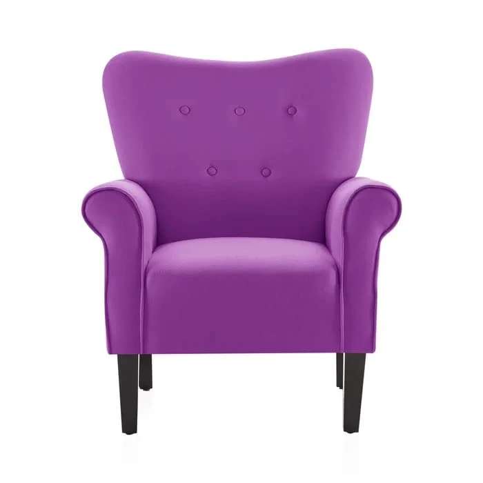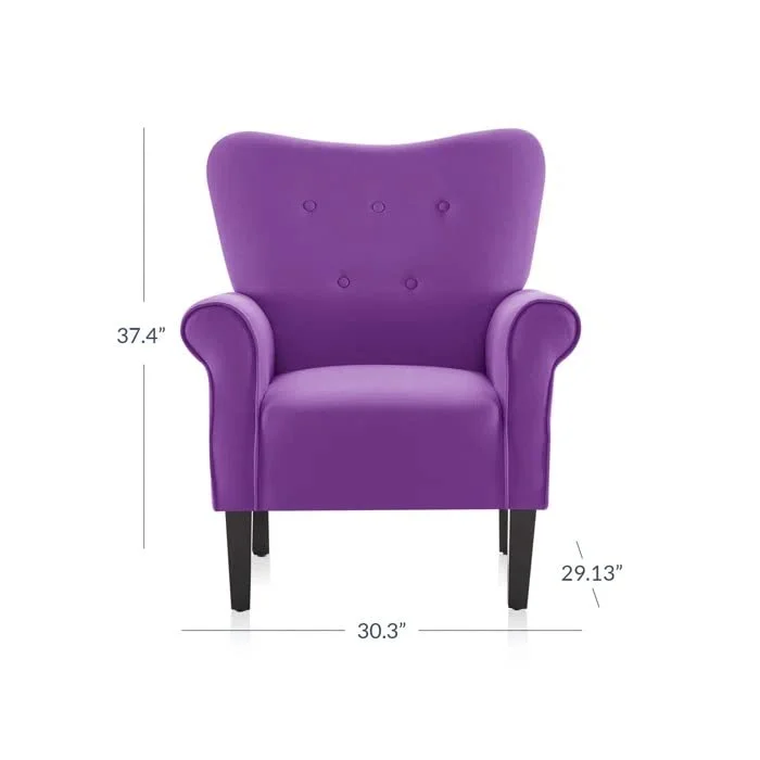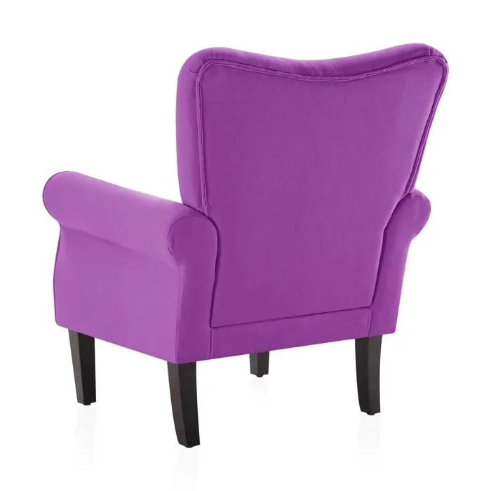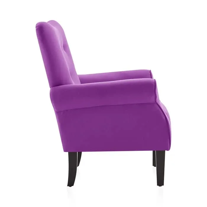 Add a soft and stylish touch to your interiors with this Purple Accent Armchair. Designed with a gently curved backrest and subtle button tufting, this chair blends modern elegance with everyday comfort.