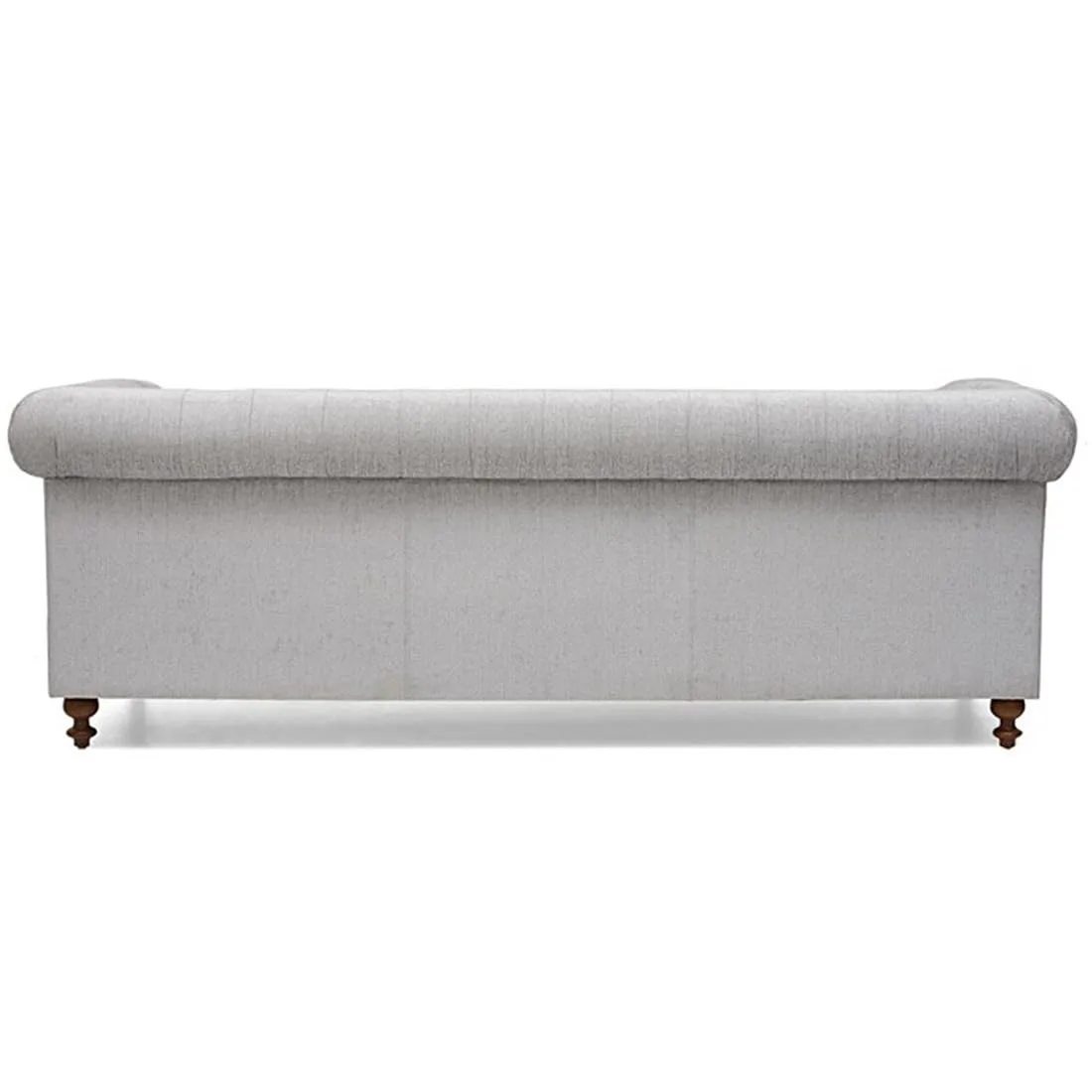 The soft grey fabric upholstery adds a contemporary touch while maintaining a luxurious appearance. Generously cushioned seats and supportive backrest ensure comfortable seating for everyday use. Built on a strong wooden frame with sturdy turned legs, this sofa offers durability along with style.