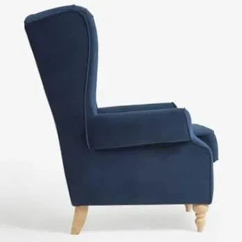 The rich blue upholstery enhances modern and classic interiors alike, while the sturdy wooden legs ensure long-lasting durability. Whether placed in a living room, bedroom, office, lounge, or reading corner, this chair becomes an instant statement piece.